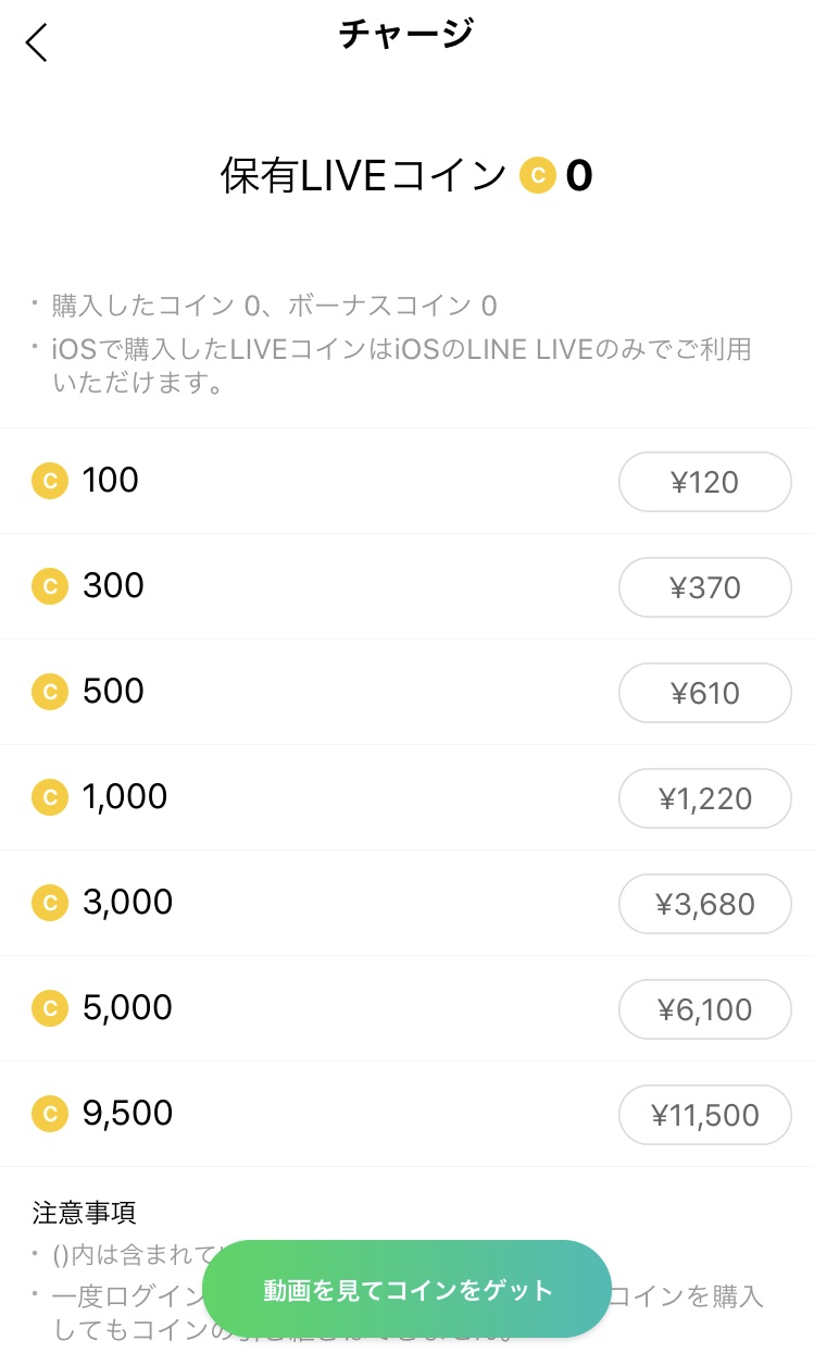 「動画を見てコインをゲット」ボタンを押してコツコツLIVEコインを貯めて使うのもアリかもしれませんね。
